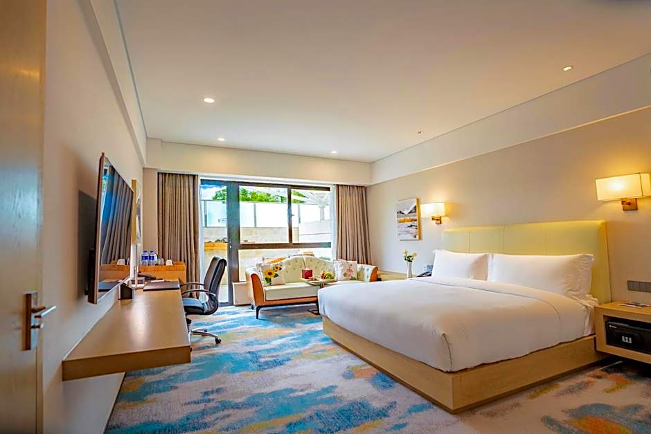 The suite's kitchen is available for cooking and storing food. The spacious air-conditioned suite provides a TV, a mini-bar, a tea and coffee maker, a seating area as well as sea views. The unit offers 1 bed.
